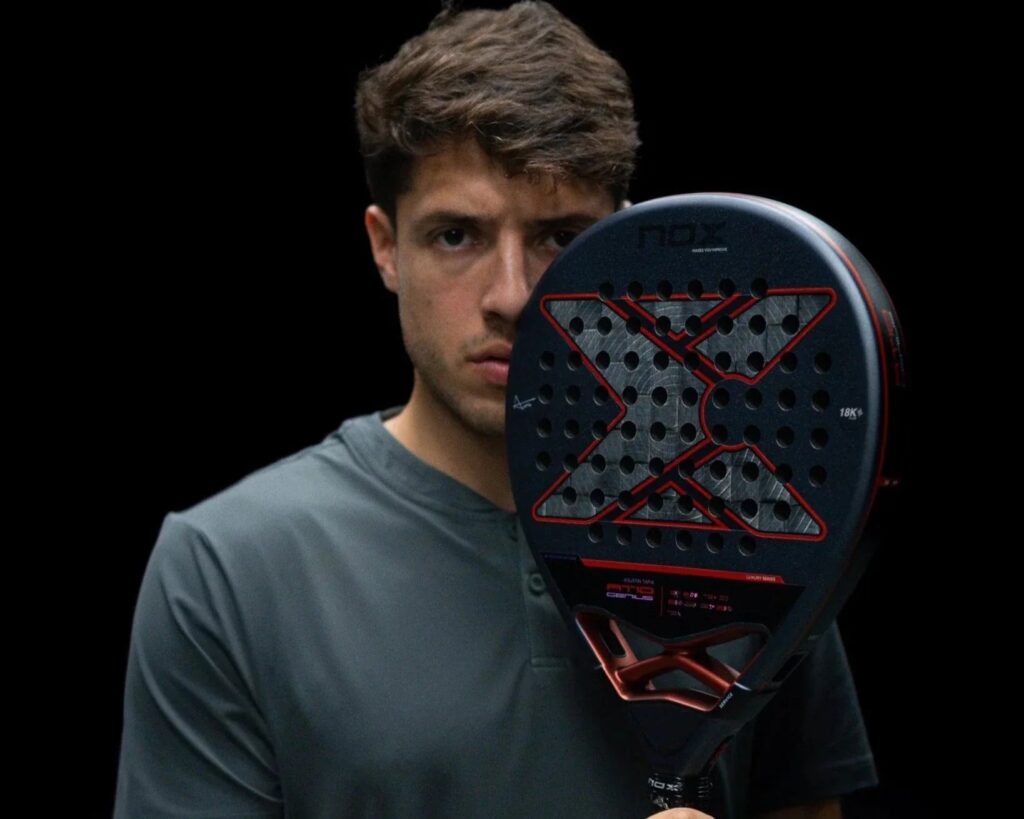 - Nox AT10 Luxury Genius 18K Alum 2025: La pala oficial de Agus. Su carbono aluminizado 18K y núcleo MLD Black Eva ofrecen un tacto intermedio, cómodo pero preciso. Es una pala que destaca por su manejabilidad y un gran equilibrio, permitiendo defender con solidez y atacar con velocidad.