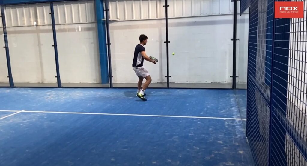 El juego de pies es fundamental. Correr hacia atrás de frente a la bola es un error común. La forma correcta es correr de lado, y los últimos pasos antes de golpear deben ser cortos y laterales (pasos de ajuste). Esto nos permite frenar, encontrar el equilibrio y establecer una base sólida para golpear con potencia y control. El cuerpo debe estar perpendicular al cristal de fondo, y la línea imaginaria que une nuestros pies debe apuntar hacia la dirección donde queremos enviar la bola.