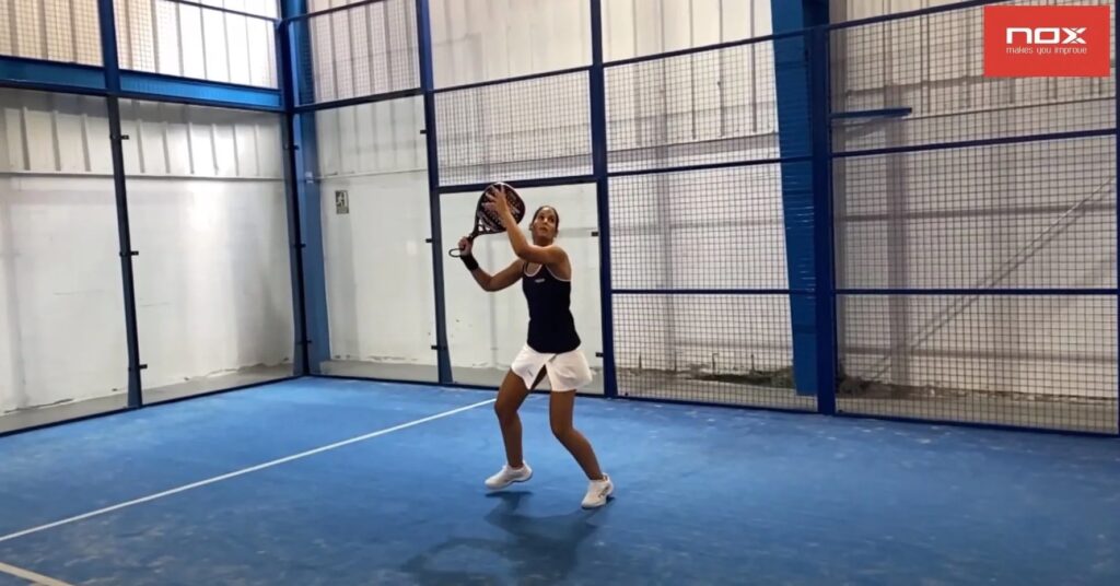 Un error frecuente es correr hacia la bola y, solo en el último instante, preparar el armado del golpe. Esto provoca un movimiento precipitado, desequilibrado y sin control. La secuencia correcta es la siguiente: en cuanto identificas que el globo viene hacia ti y decides hacer una bandeja, lo primero que debes hacer es armar el golpe. Gira los hombros, coloca el cuerpo de lado y lleva la pala hacia atrás, a la altura de la cabeza. Una vez que la pala ya está en posición, entonces y solo entonces, comienzas a desplazarte hacia atrás con tus pasos de ajuste. Correr con el golpe ya preparado te permite concentrarte únicamente en el movimiento de pies y en impactar la bola en el punto justo, resultando en un golpe mucho más fluido y controlado.