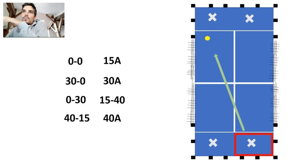 - Al ganar el primer punto después del 40-40, la pareja obtiene la ventaja.